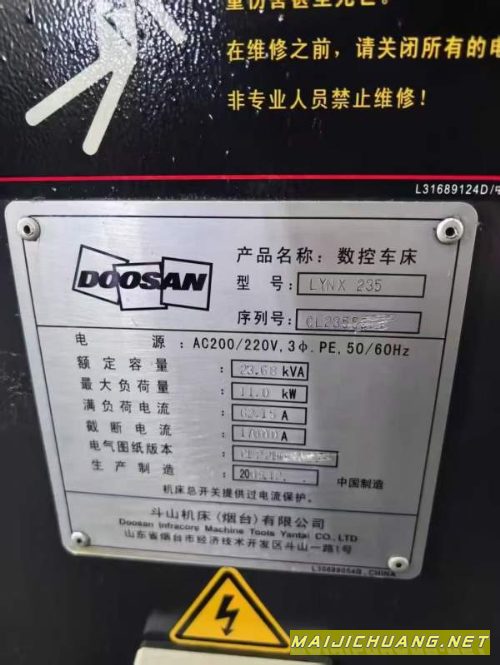 斗山235刀塔机!同款6台,8寸卡盘,线规,12工位刀塔,发那科TD系统,行程X350.Z520. 11kw伺服主电机,MT5液压尾座,链式侧排屑,军工厂使用 状态良好